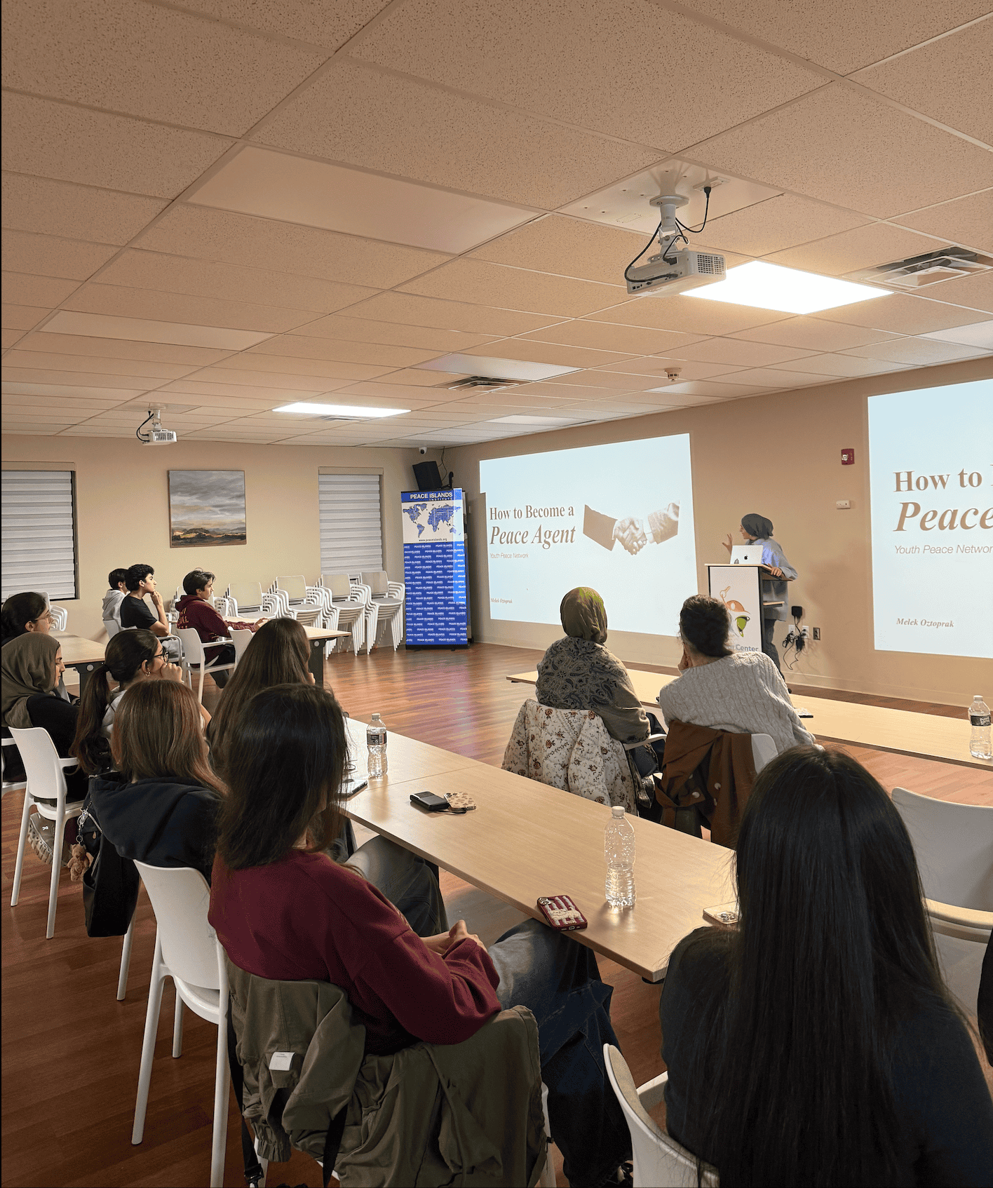 Alongside the program and presentations, students enjoyed food, informal conversation, and a welcoming environment designed to form new friendships and a shared sense of purpose. With momentum already building, this first training set a strong foundation for a year rooted in service, dialogue, and youth leadership. Photos from the night capture the energy, engagement, and excitement of a new class of young peace agents ready to make their mark.